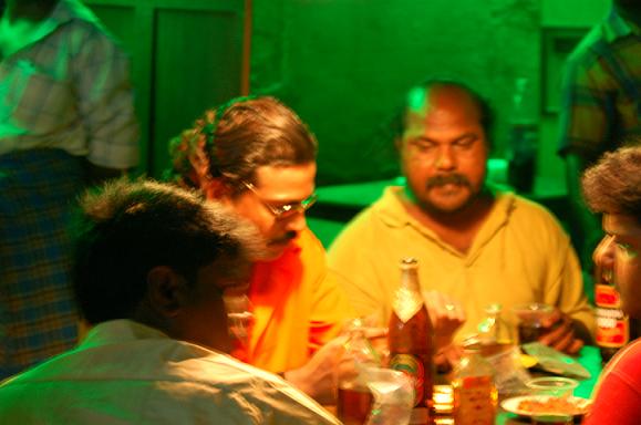 This series of pictures was taken during the shooting of the Wine Shop scenes. In Chennai, Wine Shops are places that sell, and sometimes serve, booze. Strangely, the only kind of "wine" sold in a Wine Shop is something called Golconda, which is more like a cooking Sherry.